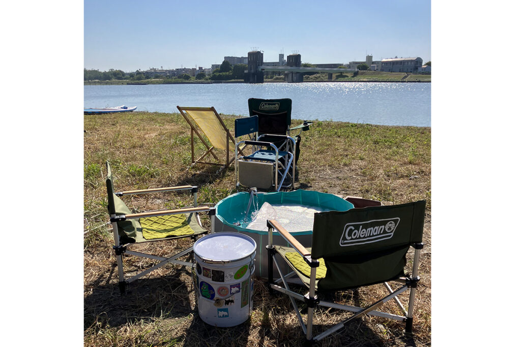 多摩川の土手で思いっきり遊んで、疲れた足を焚火足湯で回復をしていってください^_^